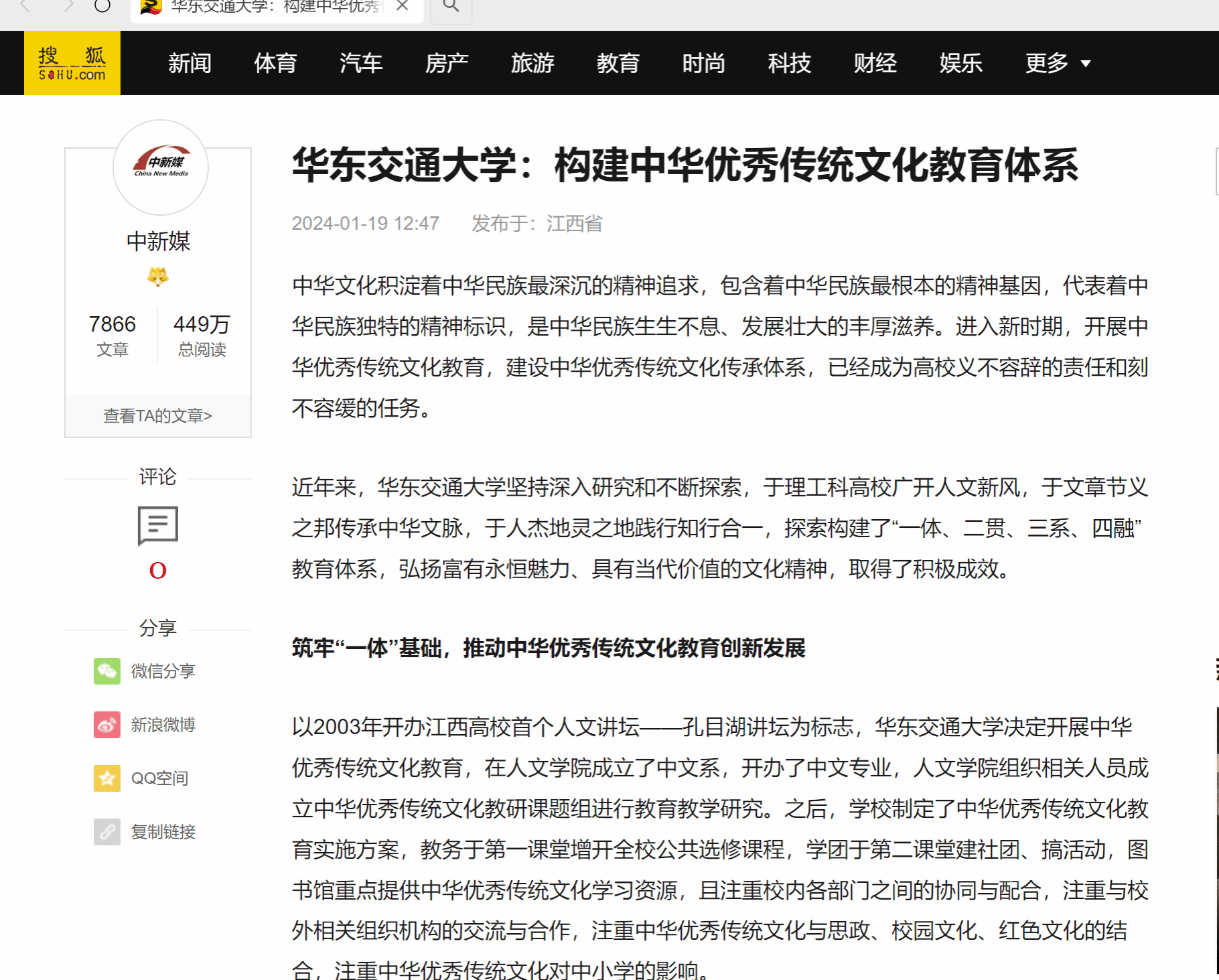 以2003年开办江西高校首个人文讲坛——孔目湖讲坛为标志,beat365中文唯一官网决定开展中华优秀传统文化教育,在人文学院成立了中文系,开办了中文专业,人文学院组织相关人员成立中华优秀传统文化教研课题组进行教育教学研究。之后,学校制定了中华优秀传统文化教育实施方案,教务于第一课堂增开全校公共选修课程,学团于第二课堂建社团、搞活动,图书馆重点提供中华优秀传统文化学习资源,且注重校内各部门之间的协同与配合,注重与校外相关组织机构的交流与合作,注重中华优秀传统文化与思政、校园文化、红色文化的结合,注重中华优秀传统文化对中小学的影响。