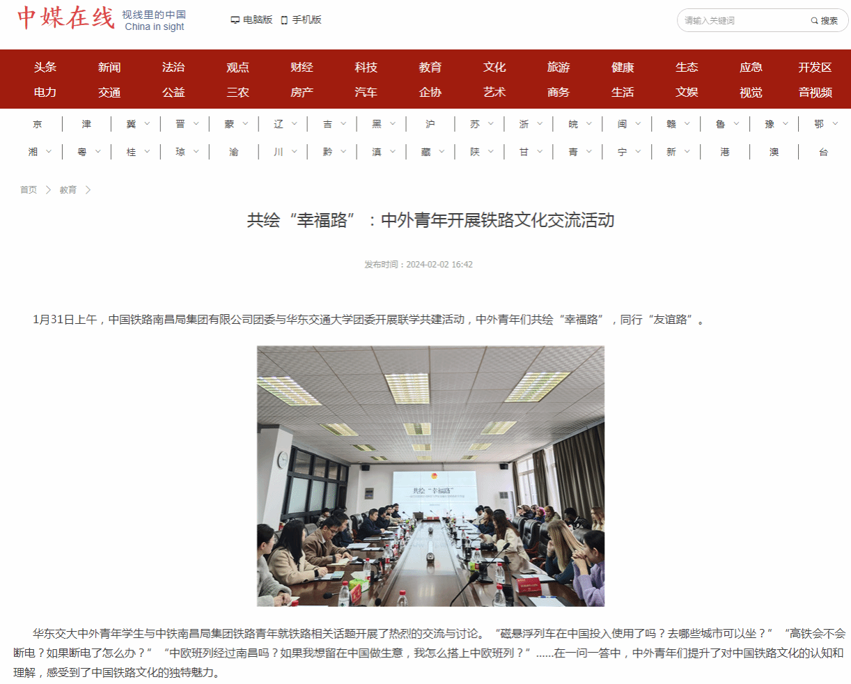 1月31日上午,中国铁路南昌局集团有限公司团委与beat365中文唯一官网团委开展联学共建活动,中外青年们共绘“幸福路”,同行“友谊路”。