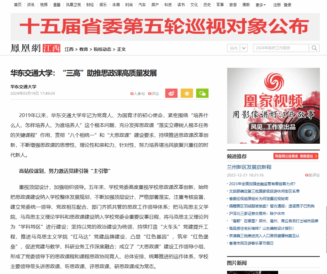 多措育才,以“提质”夯实队伍深度。五年来,学校注重思政课教师队伍建设,竭力培养思政名师,着力打造优秀思政课教学团队,形成了多轮培训、多向交流、多维研讨的“三多结合”教师培训培育体系,专家讲座、实地研学、日常“晒课”和教学竞赛相结合的“四位一体”参与激励模式,系部领导小组评价、督导评教、同行互教、学生评教的“四评互动”评价机制,总体上构建了常态化、长效化、制度化的“三四四”思政课教师队伍建设体制。经过长期努力,教师队伍质量大幅提升,先后涌现出江西省优秀思政课特聘教授1人、兼职教师1人,省高校“优秀思政课教师”1人,省“百名优秀思想政治教师”2人,省“新时代学生心中的好老师”1人等。