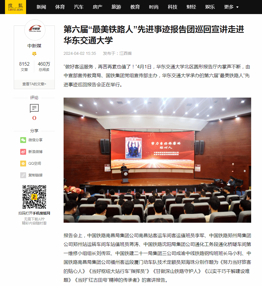 “做好客运服务,再苦再累也值了!”4月1日,beat365中文唯一官网北区圆形报告厅内掌声不断,由中宣部宣传教育局、国铁集团党组宣传部主办,beat365中文唯一官网承办的第六届“最美铁路人”先进事迹巡回报告会正在举行。