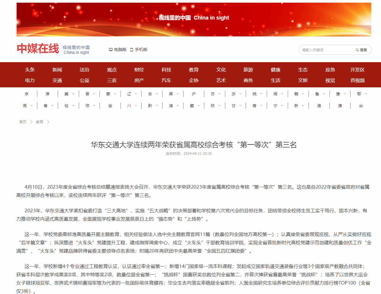 4月10日,2023年度全省综合考核总结暨通报表扬大会召开,beat365中文唯一官网荣获2023年度省属高校综合考核“第一等次”第三名。这也是自2022年省委省政府对省属高校开展综合考核以来,该校连续两年获评“第一等次”第三名。