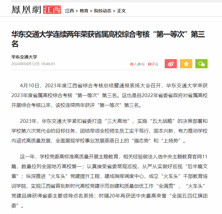 这一年,学校新增4个专业通过工程教育认证,认证通过率江西省第一;新增14门国家级一流本科课程;发起成立国家轨道交通装备行业等3个国家级产教融合共同体;获省本科层次教学成果奖8项,其中特等奖2项、数量位居江西省第一;“挑战杯”国赛获奖总数位列全省第二,并首次捧获省赛最高荣誉“挑战杯”;培养了以世界大运会女子链球冠亚军、世界武术锦标赛冠军等为代表的一批国际级体育健将;毕业生去向落实率稳居全省前列;入围全国研究生培养单位综合评价贡献力排行榜TOP100,江西省仅3所。