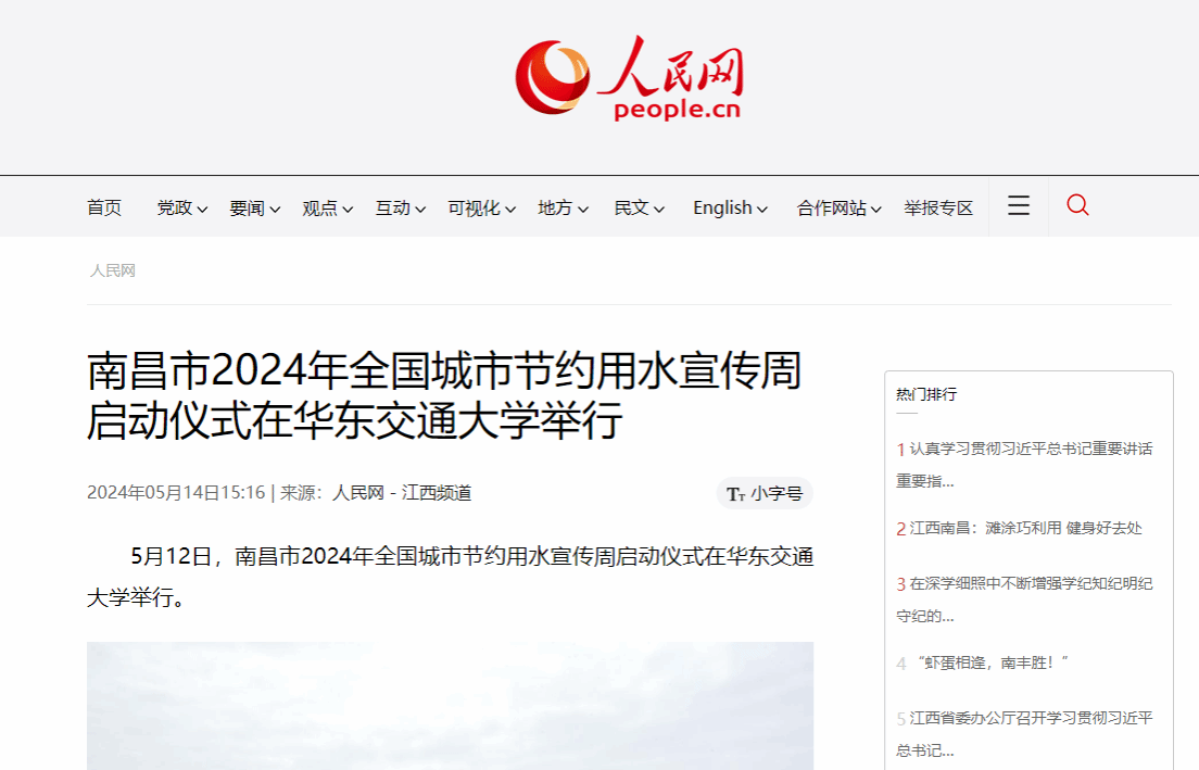 5月12日,南昌市2024年全国城市节约用水宣传周启动仪式在beat365中文唯一官网举行。
