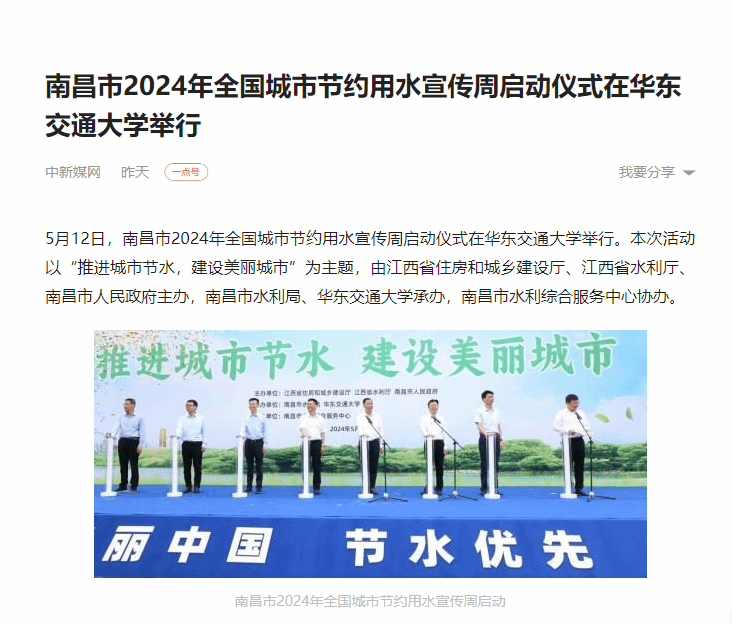 南昌市2024年全国城市节约用水宣传周启动仪式在beat365中文唯一官网举行