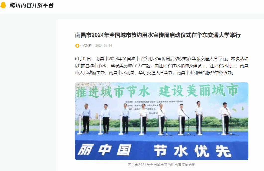 南昌市2024年全国城市节约用水宣传周启动。