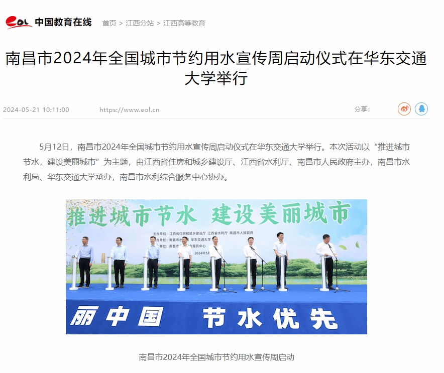 南昌市2024年全国城市节约用水宣传周启动