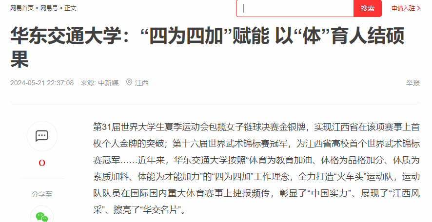 以体育人,回归大众体育。学校注重内涵建设,强化以体育人,共担任了体育类9个全国级别的副主席单位和4个副秘书长单位,获批省重点实验室、省人文社科重点研究基地各1个。体育学为省重点学科,并担任江西省高校体育学科联盟主席;运动训练为国家一流专业建设点和省特色专业,体育教育为省一流专业、“五星”专业、特色专业和品牌专业,持续向社会输送优秀体育专业人才近4000名。坚持开放办学,通过体教融合、合作交流、实习培训等途径,以“组织者”“裁判员”“教练员”“运动员”等身份,广泛参与群众体育和全员健身活动,极大拓展了群众体育的影响力和覆盖面。