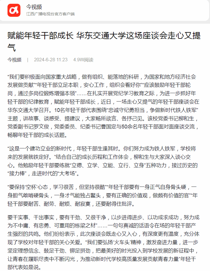 据悉,近年来,该校坚持将培养使用优秀年轻干部作为工作的重中之重,通过组织搭台,长者让台,领导站台,支持年轻干部多岗位历练,采取一系列举措,促进年轻干部成长成才。学校聚焦年轻干部队伍建设,立足新时代新形势新要求,不断增强年轻干部培养力度,锻造一支可堪大用的年轻干部铁军。打破条块分隔,推动机关和学院双向交流;坚持内外交替,有组织、有计划地选派优秀的年轻干部到党政机关、企事业单位、科研院所等挂职锻炼,帮助干部开阔视野,锤炼本领。