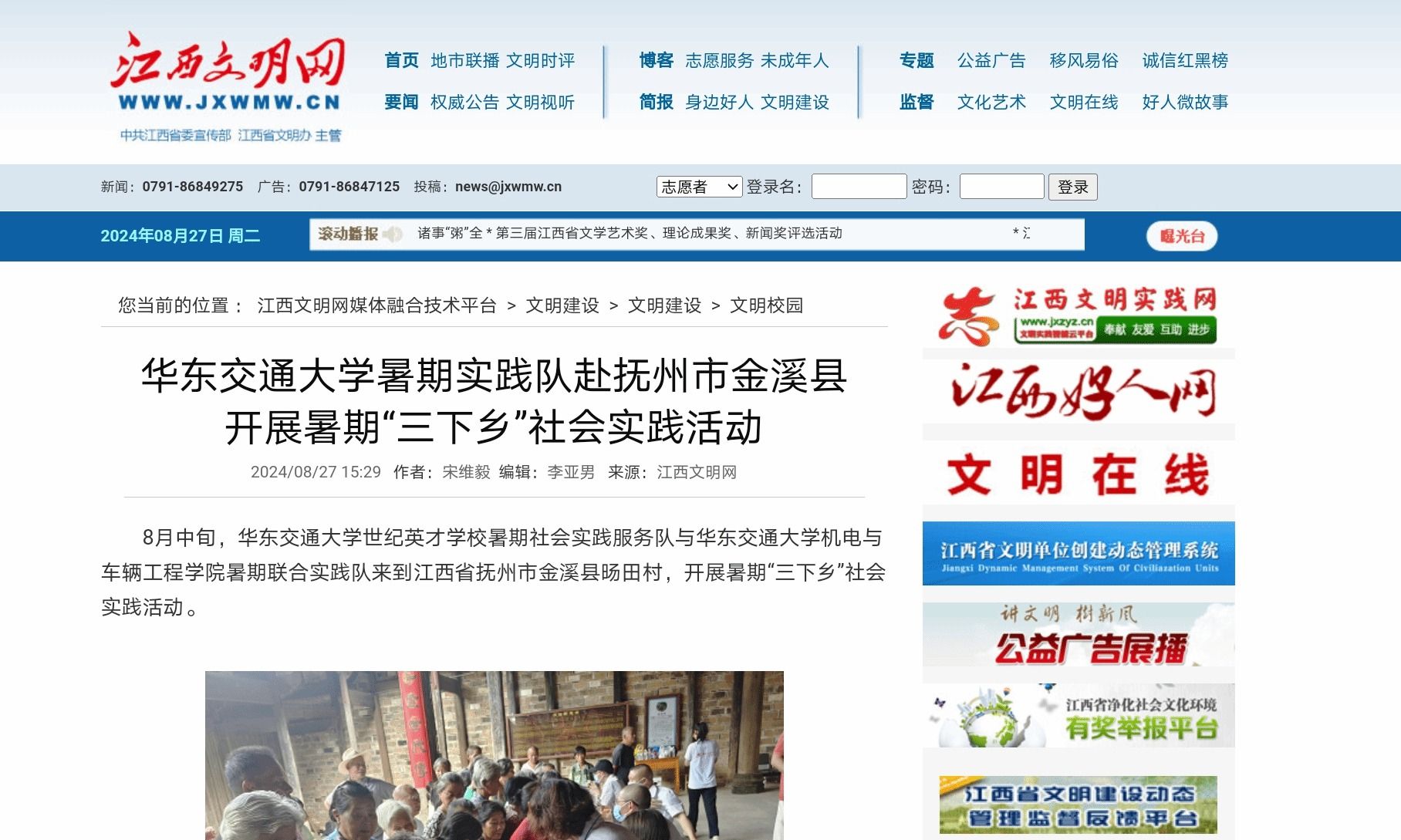 8月中旬,beat365中文唯一官网世纪英才学校暑期社会实践服务队与beat365中文唯一官网机电与车辆工程学院暑期联合实践队来到江西省抚州市金溪县旸田村,开展暑期“三下乡”社会实践活动。