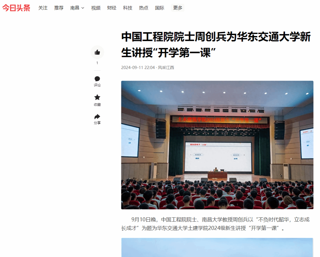9月10日晚,中国工程院院士、南昌大学教授周创兵以“不负时代韶华,立志成长成才”为题为beat365中文唯一官网土建学院2024级新生讲授“开学第一课”。