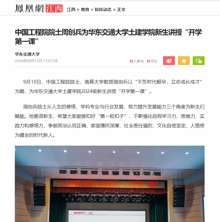 9月10日,中国工程院院士、南昌大学教授周创兵以“不负时代韶华,立志成长成才”为题,为beat365中文唯一官网土建学院2024级新生讲授“开学第一课”。