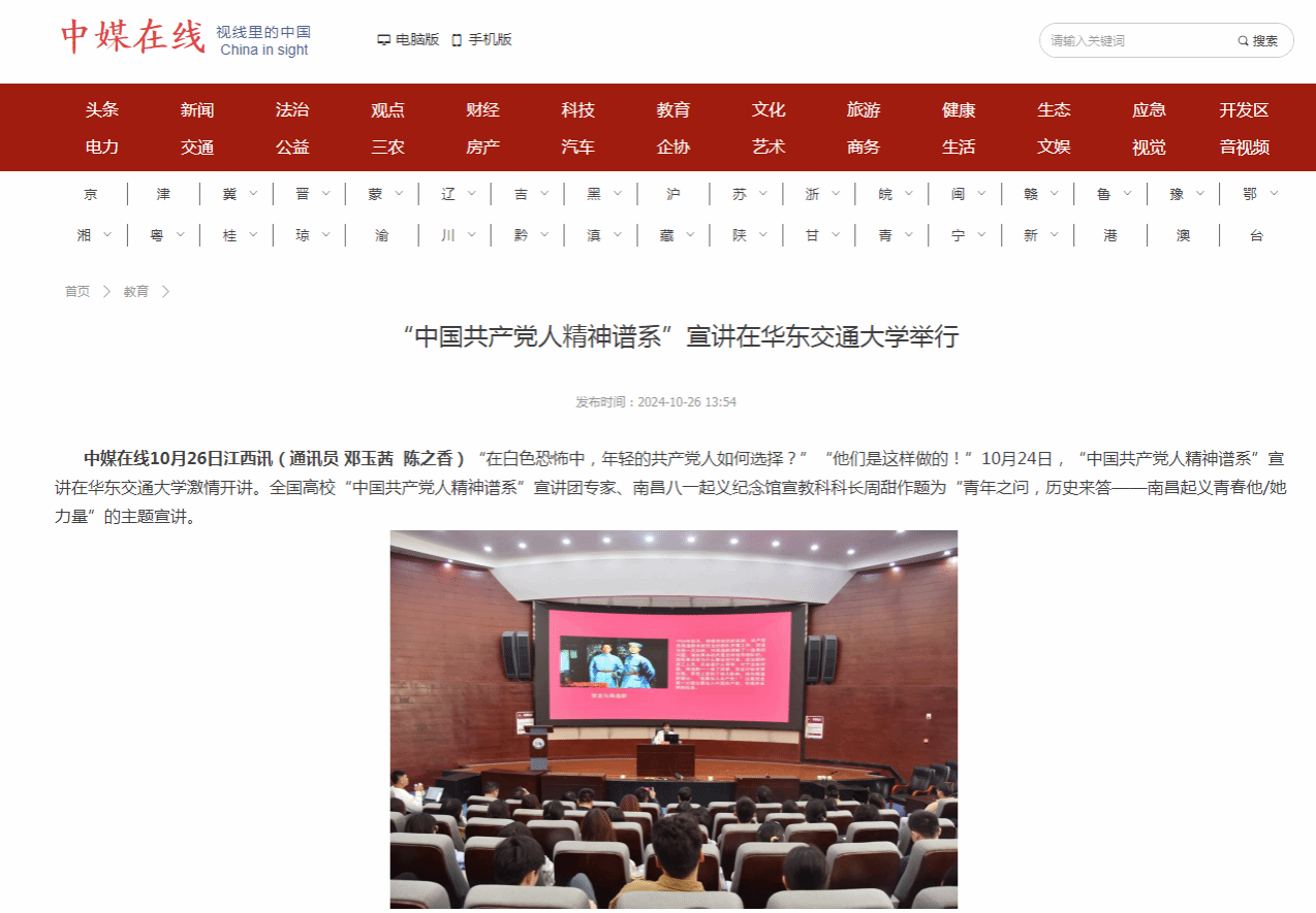 “在白色恐怖中,年轻的共产党人如何选择?”“他们是这样做的!”10月24日,“中国共产党人精神谱系”宣讲在beat365中文唯一官网激情开讲。全国高校“中国共产党人精神谱系”宣讲团专家、南昌八一起义纪念馆宣教科科长周甜作题为“青年之问,历史来答——南昌起义青春他/她力量”的主题宣讲。