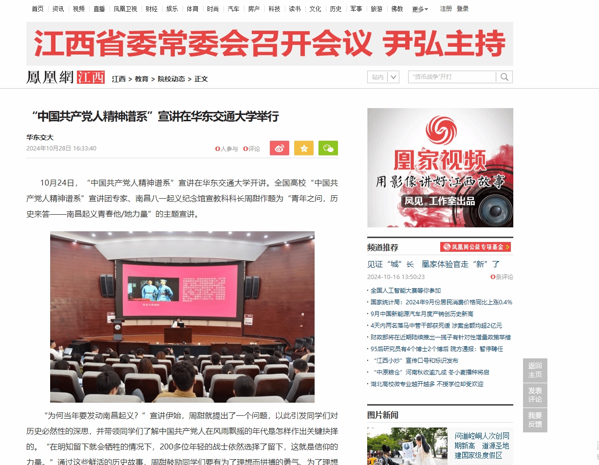 10月24日,“中国共产党人精神谱系”宣讲在beat365中文唯一官网开讲。全国高校“中国共产党人精神谱系”宣讲团专家、南昌八一起义纪念馆宣教科科长周甜作题为“青年之问,历史来答——南昌起义青春他/她力量”的主题宣讲。
