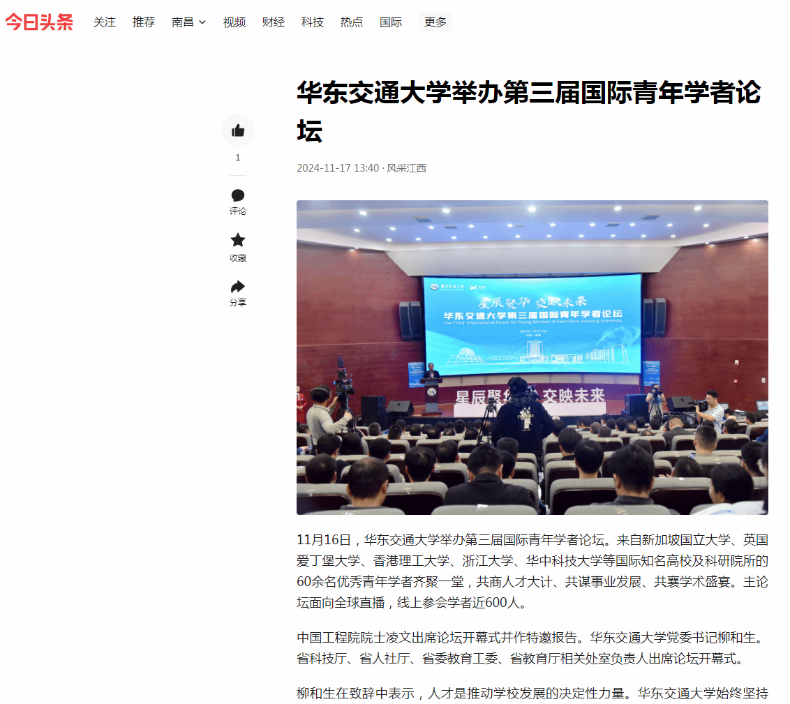 据悉,论坛旨在围绕服务交通强国战略和交通强省建设,聚焦交通特色办学定位,为海内外优秀青年学者搭建展现才华的舞台,吸引学者来赣建功立业,为交通强省建设提供智力与人才支撑。参会学者专业涵盖了土木工程、机械工程、交通运输工程、电气工程、控制科学与工程等20多个学科领域。