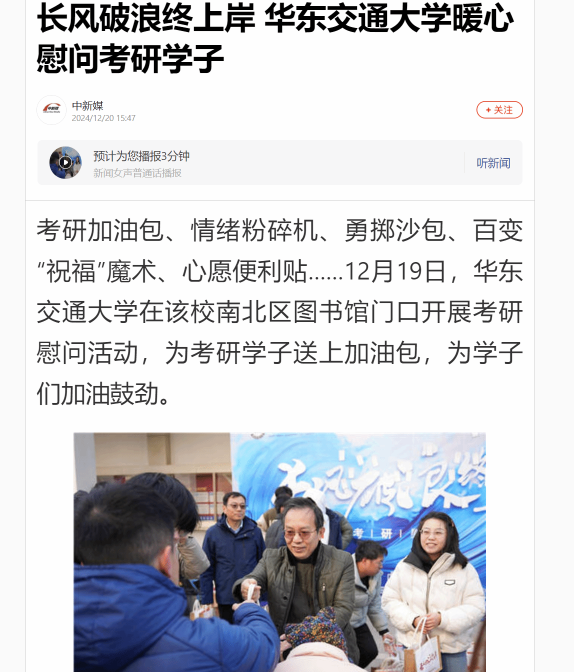 “报考了哪所大学?”“预祝考研成功”该校党委书记柳和生,党委副书记、校长徐长节,党委委员、副校长欧阳志刚来到考研慰问现场,一边送上加油包,一边与考研学子们亲切交流,希望他们轻松应考,祝福他们金榜题名,铁定上岸。