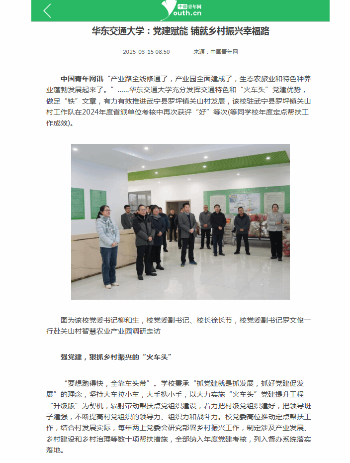 “目前还在制定涵盖党建帮扶、产业发展和乡村建设等新一年帮扶措施20余条,通过真抓实干,切实推动关山村走出一条“党建+产业”特色发展新路子,为乡村振兴贡献华交力量。”该校组织部负责人说。
