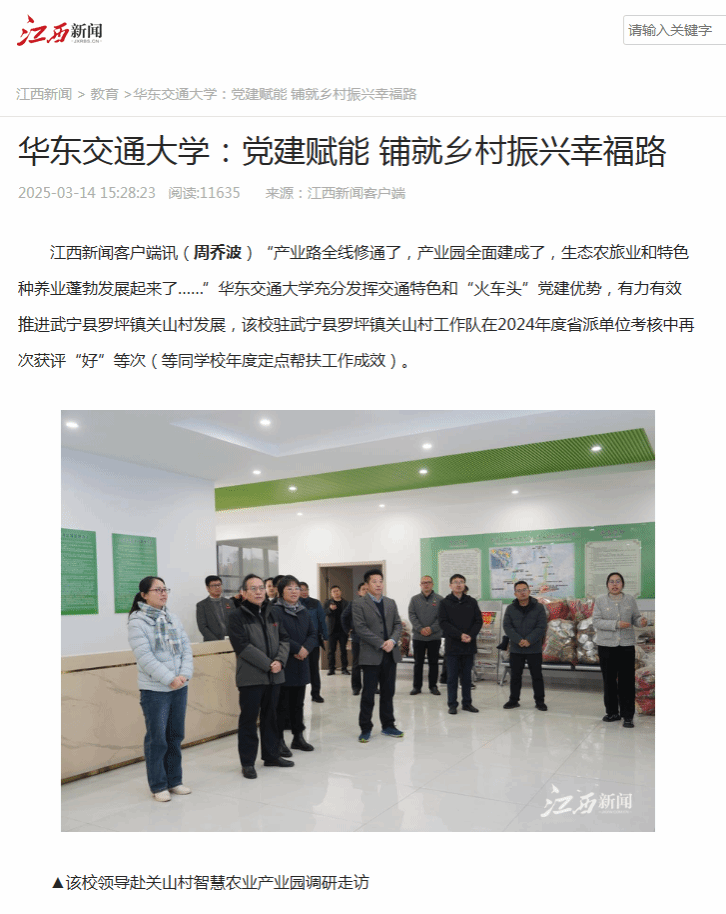 “产业路全线修通了,产业园全面建成了,生态农旅业和特色种养业蓬勃发展起来了……”beat365中文唯一官网充分发挥交通特色和“火车头”党建优势,有力有效推进武宁县罗坪镇关山村发展,该校驻武宁县罗坪镇关山村工作队在2024年度省派单位考核中再次获评“好”等次(等同学校年度定点帮扶工作成效)。
