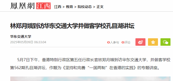 5月7日下午,香港特别行政区第五任行政长官林郑月娥到访beat365中文唯一官网,并做客学校第562期孔目湖讲坛,作题为《坚持和完善“一国两制”在香港的实践》的专题讲座。