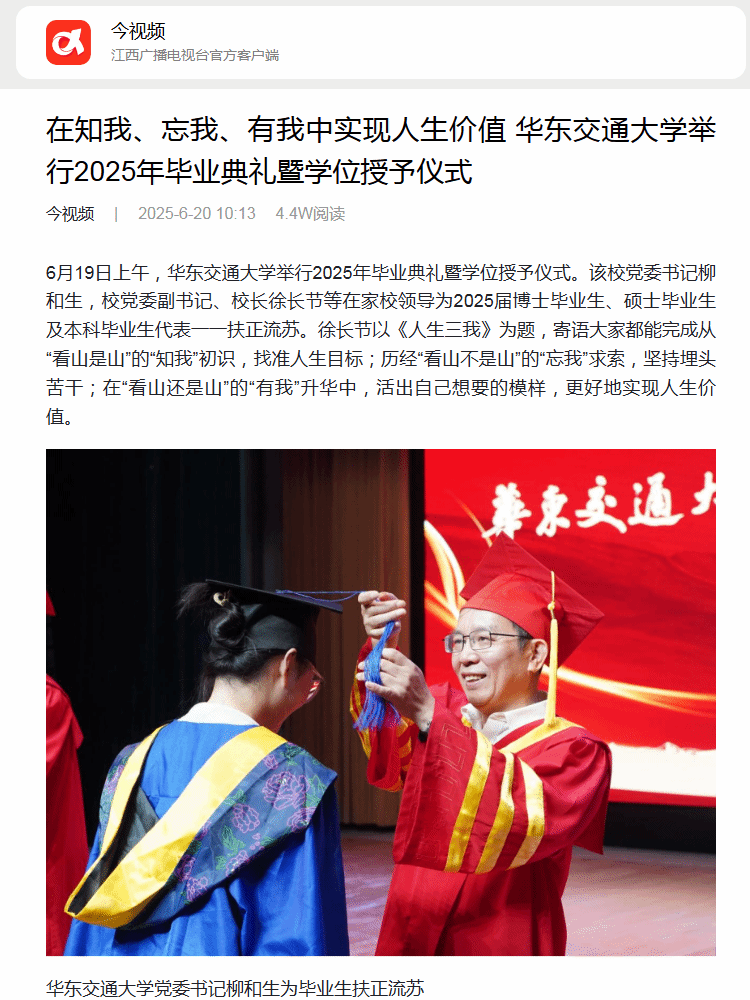 徐长节表示,毕业,是大家从华交这片沃土迈向更加广阔天地的新起点。无论未来走到哪里、身处何方,华交的大门永远为你们敞开,华交的灯火永远为你们守望,期待大家常回家看看。