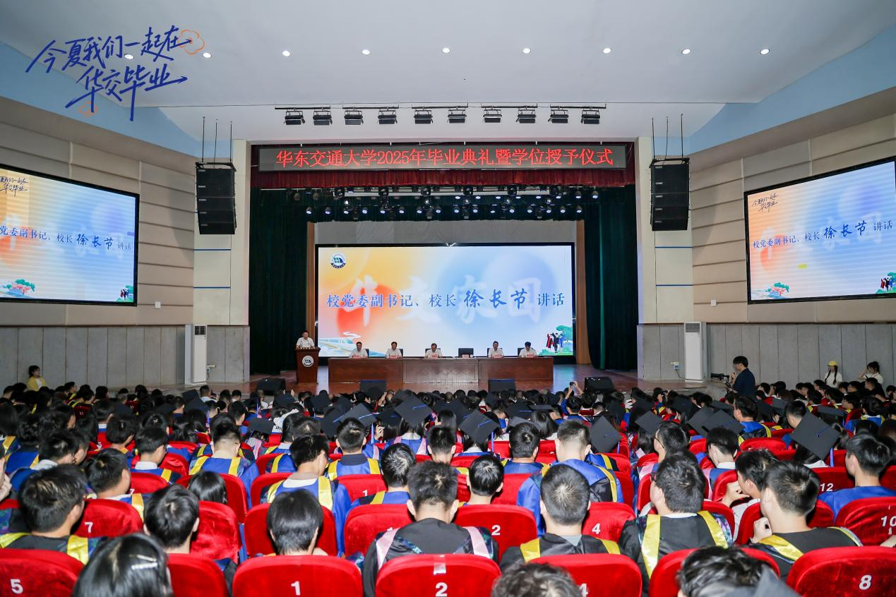“那年盛夏,汇聚双港,各自追寻着光亮;心之所向,热爱滚烫,华交滋养着希望……”2025年毕业典礼在原创毕业歌曲《日新华交》的旋律中拉开了序幕。