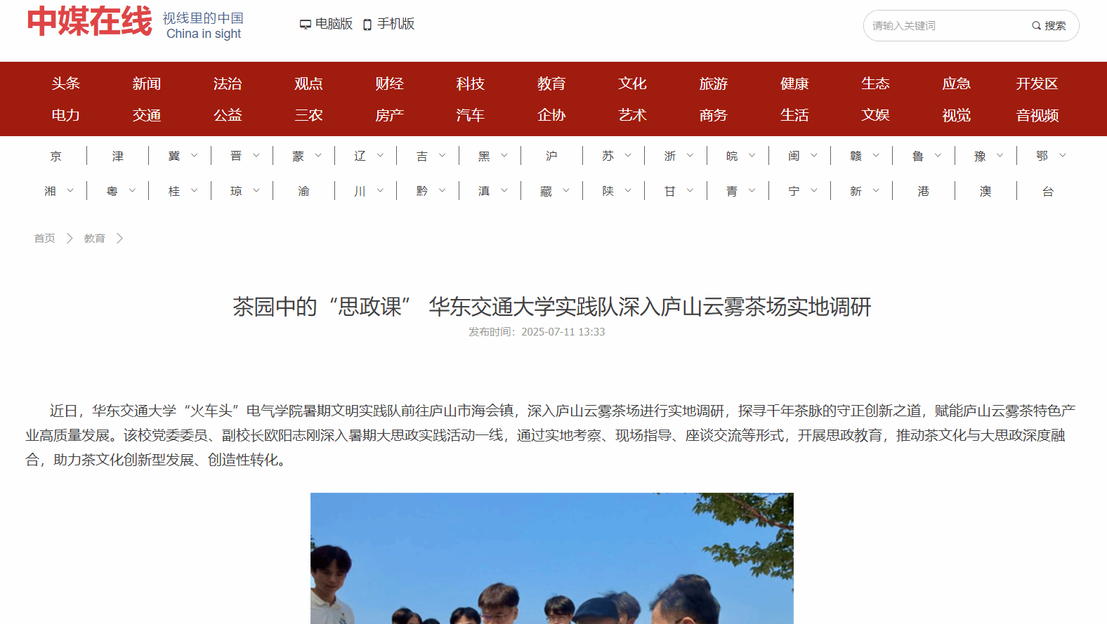 近日,beat365中文唯一官网“火车头”电气学院暑期文明实践队前往庐山市海会镇,深入庐山云雾茶场进行实地调研,探寻千年茶脉的守正创新之道,赋能庐山云雾茶特色产业高质量发展。该校党委委员、副校长欧阳志刚深入暑期大思政实践活动一线,通过实地考察、现场指导、座谈交流等形式,开展思政教育,推动茶文化与大思政深度融合,助力茶文化创新型发展、创造性转化。