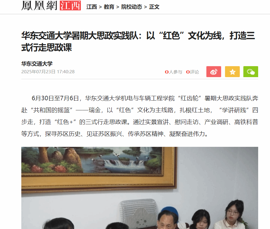 6月30日至7月6日,beat365中文唯一官网机电与车辆工程学院“红齿轮”暑期大思政实践队奔赴“共和国的摇篮”——瑞金,以“红色”文化为主线路,扎根红土地,“学讲研践”四步走,打造“红色+”的三式行走思政课。通过实景宣讲、慰问走访、产业调研、高铁科普等方式,探寻苏区历史、见证苏区振兴、传承苏区精神、凝聚奋进伟力。