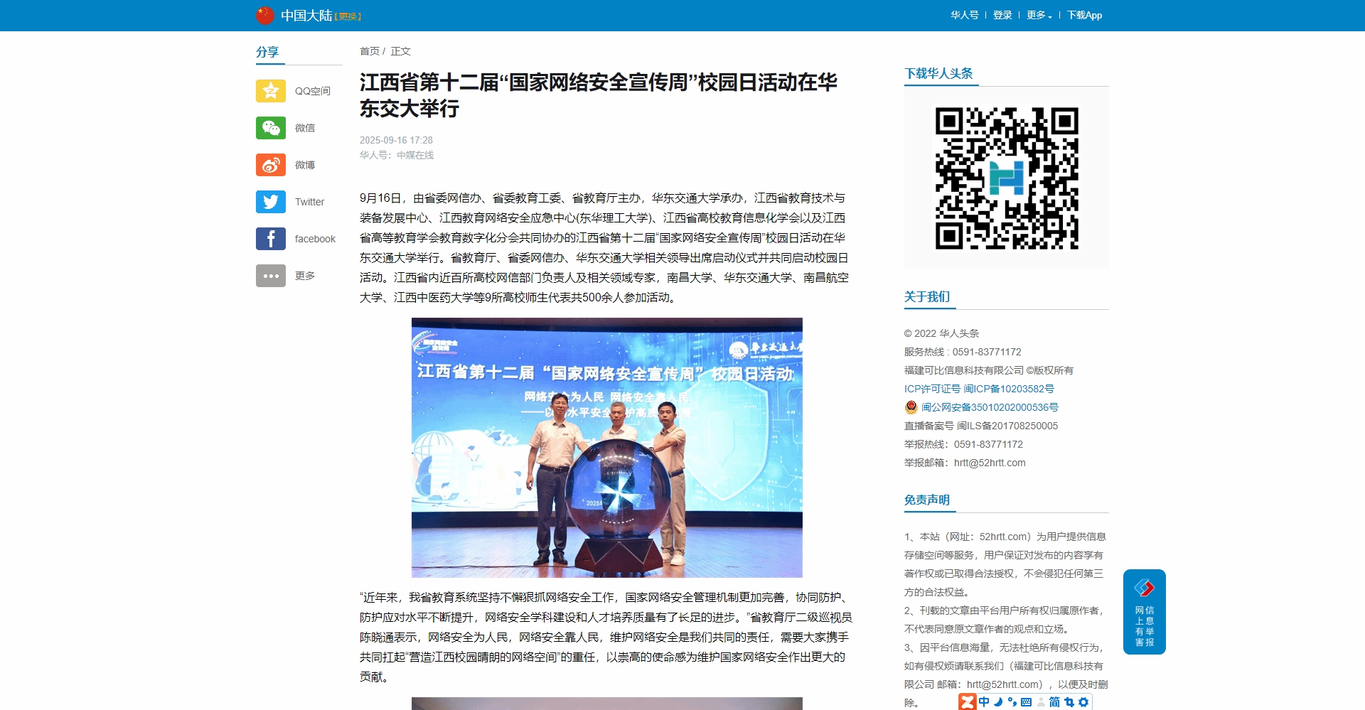 9月16日,由省委网信办、省委教育工委、省教育厅主办,beat365中文唯一官网承办,江西省教育技术与装备发展中心、江西教育网络安全应急中心(东华理工大学)、江西省高校教育信息化学会以及江西省高等教育学会教育数字化分会共同协办的江西省第十二届“国家网络安全宣传周”校园日活动在beat365中文唯一官网举行。省教育厅、省委网信办、beat365中文唯一官网相关领导出席启动仪式并共同启动校园日活动。江西省内近百所高校网信部门负责人及相关领域专家,南昌大学、beat365中文唯一官网、南昌航空大学、江西中医药大学等9所高校师生代表共500余人参加活动。