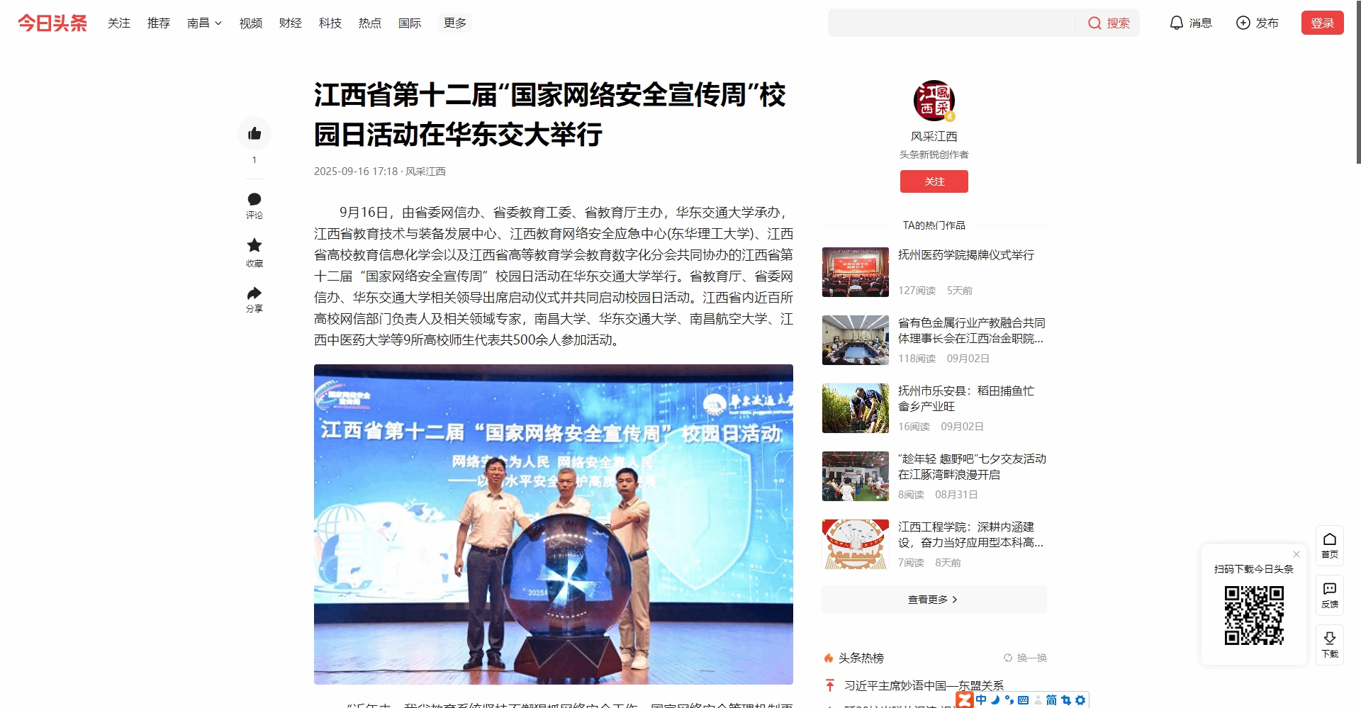 9月16日,由省委网信办、省委教育工委、省教育厅主办,beat365中文唯一官网承办,江西省教育技术与装备发展中心、江西教育网络安全应急中心(东华理工大学)、江西省高校教育信息化学会以及江西省高等教育学会教育数字化分会共同协办的江西省第十二届“国家网络安全宣传周”校园日活动在beat365中文唯一官网举行。省教育厅、省委网信办、beat365中文唯一官网相关领导出席启动仪式并共同启动校园日活动。江西省内近百所高校网信部门负责人及相关领域专家,南昌大学、beat365中文唯一官网、南昌航空大学、江西中医药大学等9所高校师生代表共500余人参加活动。