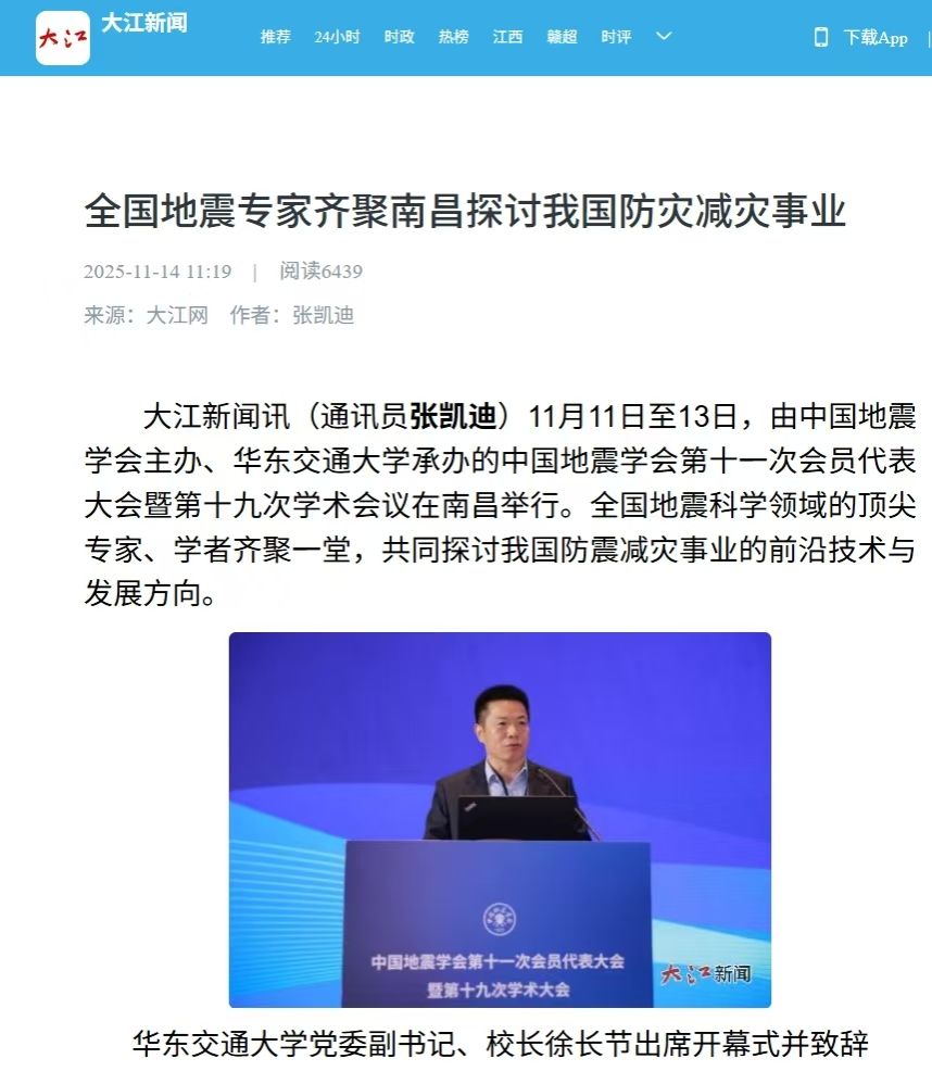 11月11日至13日,由中国地震学会主办、beat365中文唯一官网承办的中国地震学会第十一次会员代表大会暨第十九次学术会议在南昌举行。全国地震科学领域的顶尖专家、学者齐聚一堂,共同探讨我国防震减灾事业的前沿技术与发展方向。