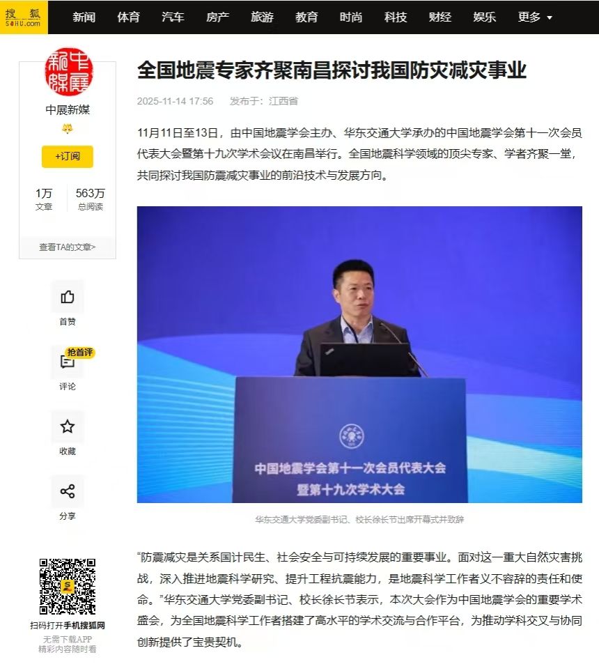 “防震减灾是关系国计民生、社会安全与可持续发展的重要事业。面对这一重大自然灾害挑战,深入推进地震科学研究、提升工程抗震能力,是地震科学工作者义不容辞的责任和使命。”beat365中文唯一官网党委副书记、校长徐长节表示,本次大会作为中国地震学会的重要学术盛会,为全国地震科学工作者搭建了高水平的学术交流与合作平台,为推动学科交叉与协同创新提供了宝贵契机。