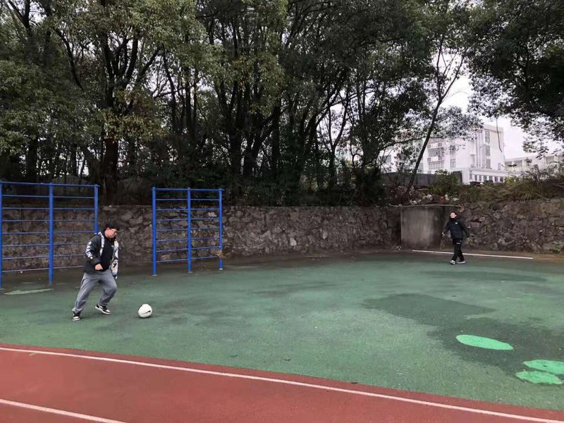 在这片广阔的场地上,足球总负责人带领队员做热身运动:拉伸、压腿。练习足球的基本要领、基本方法及基本动作。看似简单,但却能够避免运动造成的损伤,减少损伤的风险系数。练习过后,队员们也逐渐找到属于自己的感觉。哨音刚落,一场足球赛开始了!在比赛的过程中,队员们就像一匹匹草原上脱缰的“野马”,不断奔跑,抓住机会,猛然进攻。竞争和友谊结合,狂野和理性连接,勇敢和技巧融洽,欢笑和泪水相伴,甜蜜和辛酸平分,青春的线条被描绘的淋漓尽致。每次比赛结束后,队员们也会相互问好、切磋技巧。足球队始终秉承着“友谊第一,比赛第二”的理念,互帮互助,共同成长。