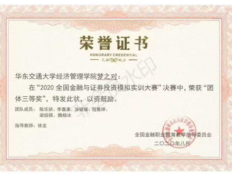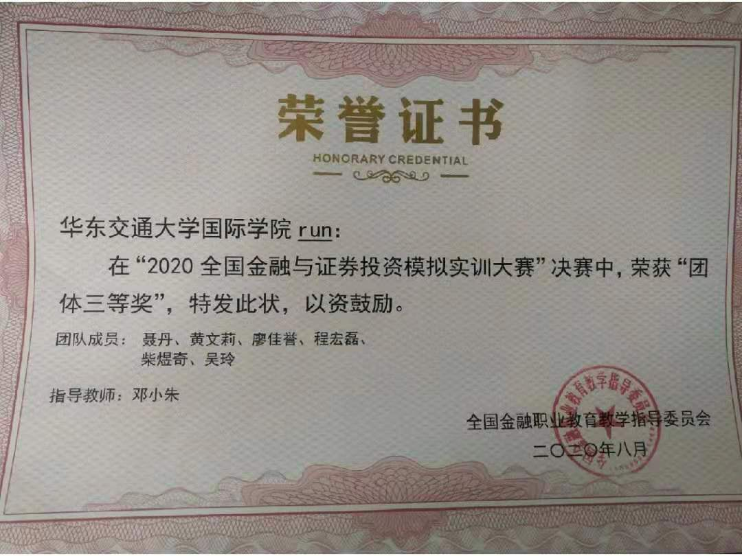 在“全国金融与证券投资模拟实训大赛”中,我院老师细心指导,同学们也精心准备,充分利用所学专业知识,从一系列的赛事考验中脱颖而出,成绩斐然,其中共有7支队伍、20位同学荣获第二、第三等奖!