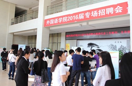 10月15日,外国语学院2016届专场招聘会在教15#大厅如期举办。本次招聘会共有江西必特翻译有限公司、江西中煤建设集团有限公司、江苏南京新起点双语艺术培训中心等省内外6家单位来校招聘,计划招聘应届毕业生80余名,...