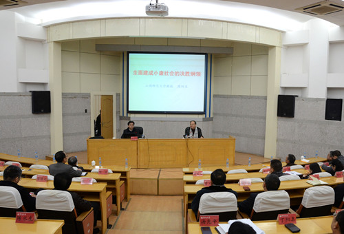 12月14日,省委党的十八届五中全会和省委十三届十二次全会精神宣讲团走进beat365,宣讲团成员、江西师范大学马克思主义学院院长周利生作题为《全面建成小康社会的决胜纲领》的报告,校党委书记万明主持会议,全体校领导...