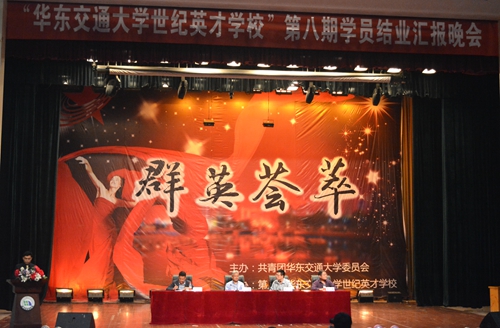 5月9日,世纪英才学校第八期学员结业汇报晚会在南区礼堂举行,“群英荟萃”唱响青春之歌。校党委副书记、世纪英才学校校长汪立夏出席,授予10位学员“世纪英才学校优秀学员”称号,并给5位学员代表颁发结业证书。 ...