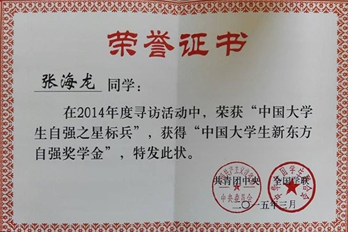 beat365荣获2014年度“中国大学生自强之星标兵”和全国“优秀组...