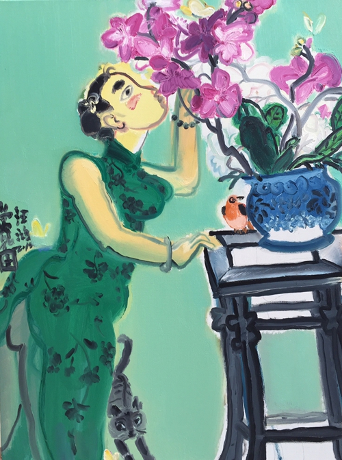 艺术学院汪鸿老师油画作品《赏花图》入选“中国青年油画作品展”