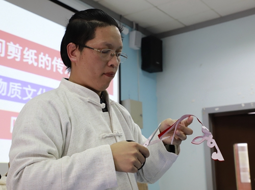 传统手艺人叶松清先生来校传授剪纸技艺